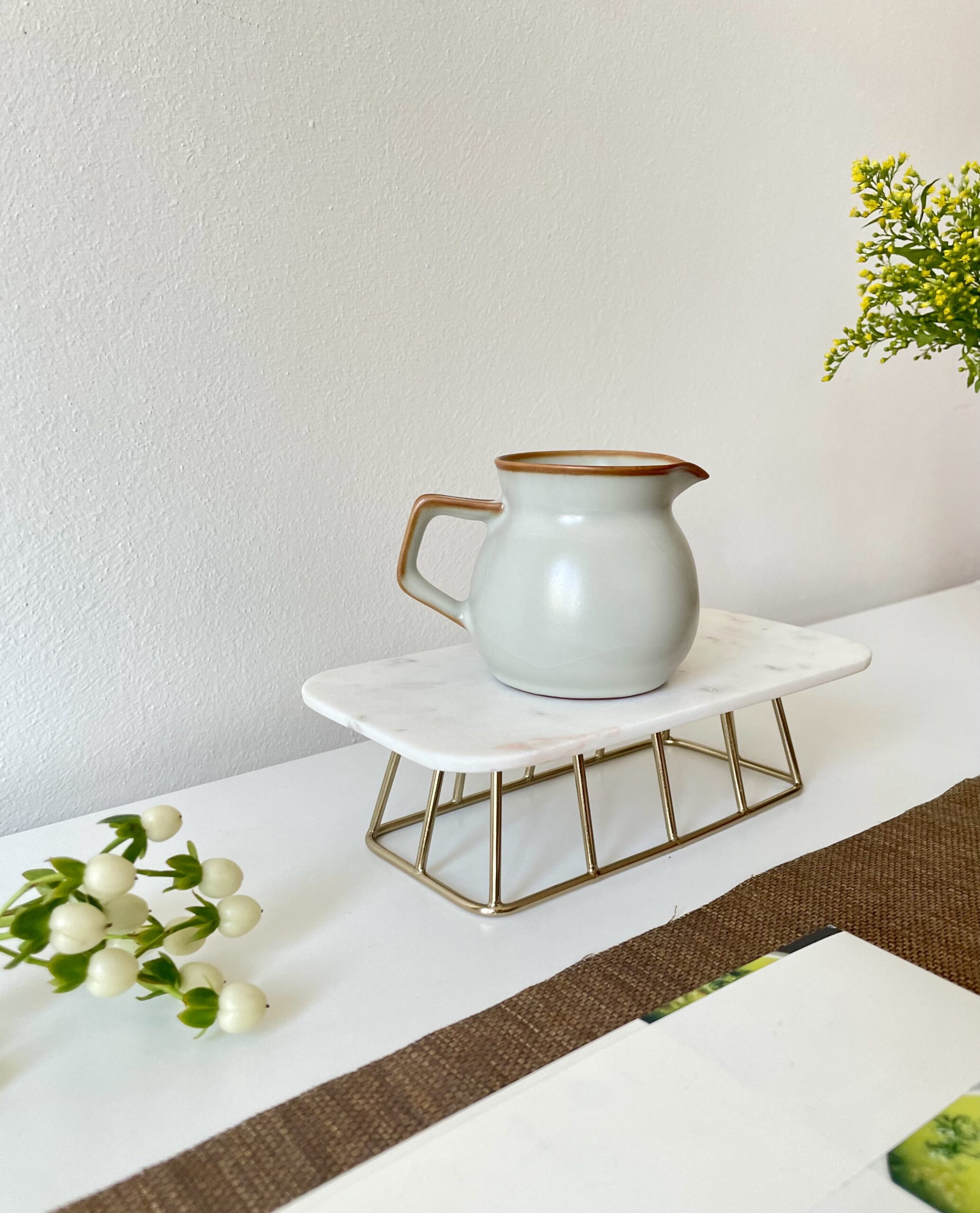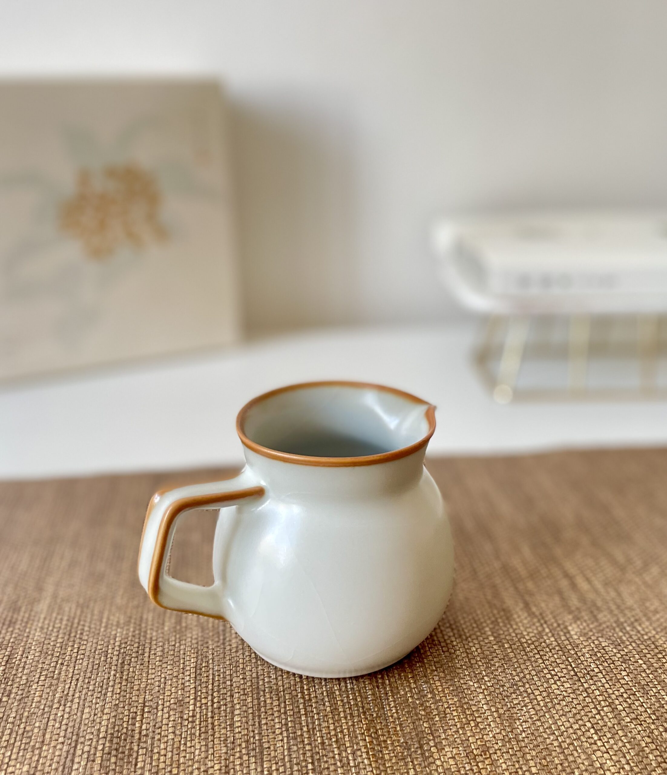 This handmade ceramic jar is finished with a celadon glaze, a traditional East Asian technique prized for its smooth, glass-like finish and soft greenish tone. The brown rim adds a natural, rustic accent, blending elegance with simplicity.